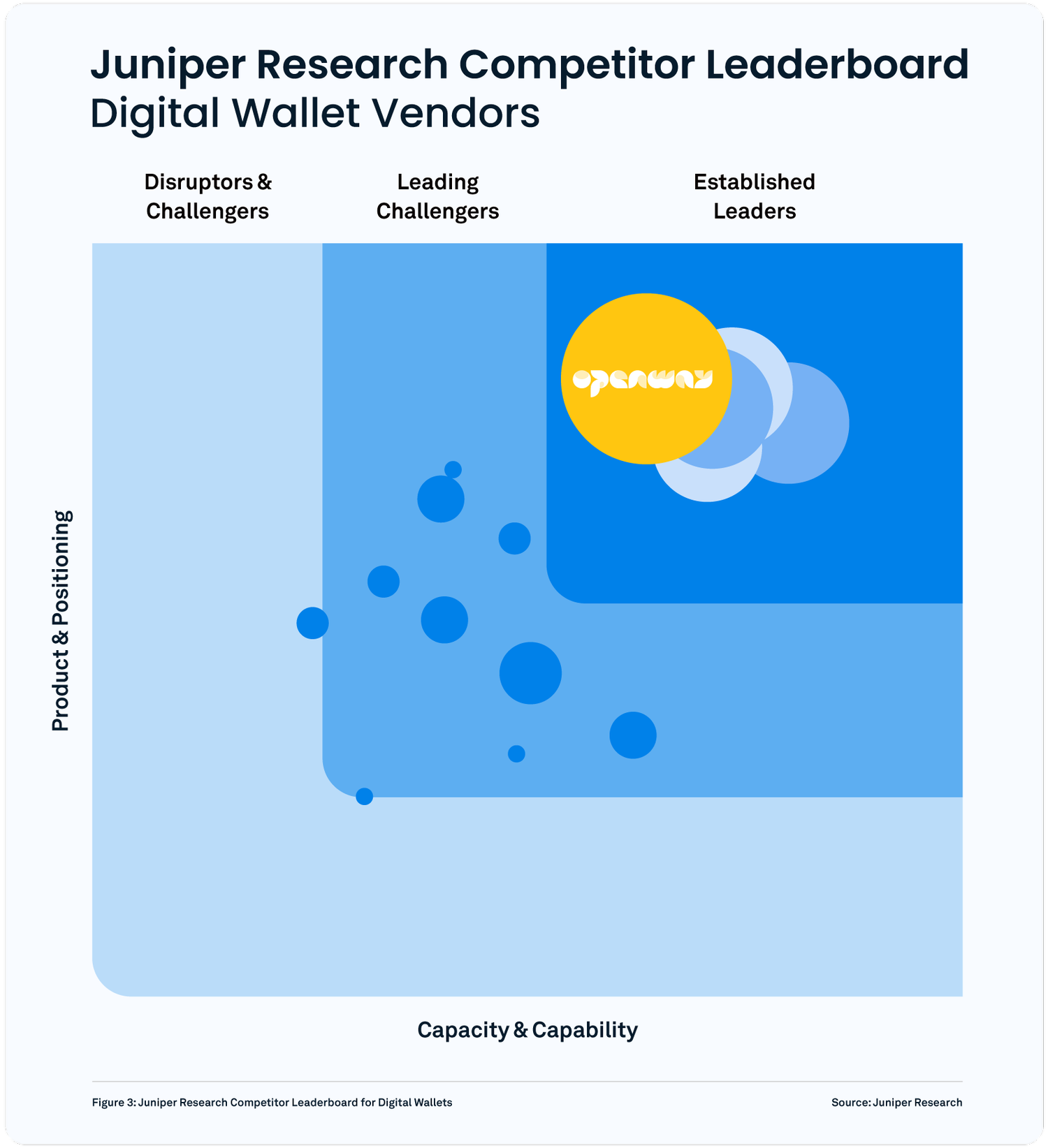 Juniper Research riconosce OpenWay come leader affermato nella tecnologia dei pagamenti e colloca Way4 tra le prime cinque piattaforme di portafoglio digitale a livello globale. OpenWay vanta una comprovata esperienza nelle innovazioni di pagamento digitale ed è stata la prima a portare sul mercato globale una soluzione software di portafoglio digitale white-label. La soluzione Way4 Digital Wallet di OpenWay ha ottenuto punteggi particolarmente elevati grazie alla varietà di casi d’uso supportati e all’ampiezza di tipologie di pagamento gestite.